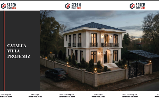 Çatalca’da hayata geçirilen villa yapım işi, Serem İnşaat Enerji tarafından titizlikle tamamlanmıştır. Modern mimari anlayışı, sağlam yapı teknikleri ve estetik detayları bir araya getiren proje; konforlu, güvenli ve uzun ömürlü yaşam alanları oluşturma hedefiyle inşa edilmiştir. Kaba inşaattan ince işçiliğe kadar tüm süreçler planlı, programlı ve yüksek kalite standartlarına uygun şekilde yürütülmüş; kullanılan malzemeler ve uygulanan teknikler ile dayanıklılık ön planda tutulmuştur. Serem İnşaat Enerji olarak, müşteri memnuniyetini esas alan yaklaşımımız ve uzman ekibimizle projeyi zamanında ve eksiksiz şekilde teslim etmenin gururunu yaşıyoruz.